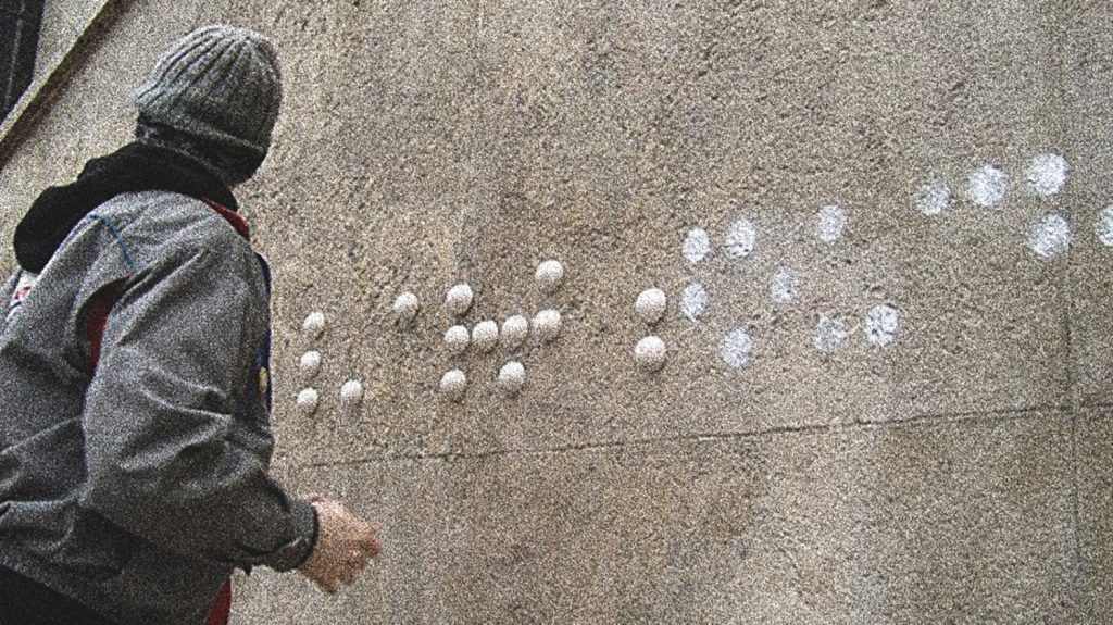 ‘The Blind’ is a 34-year-old graffiti artist from Nantes in France who, despite his name, has full vision. He uses oversized braille characters to create urban art that can be appreciated by people with visual impairments. The artist came up with the idea of tactile graffiti in 2004. Using a stencil, a glue gun and tiny half-spheres of plaster, which he prepares in advance, he decorates walls in his home town of Nantes, as well as further afield in Europe and the US.