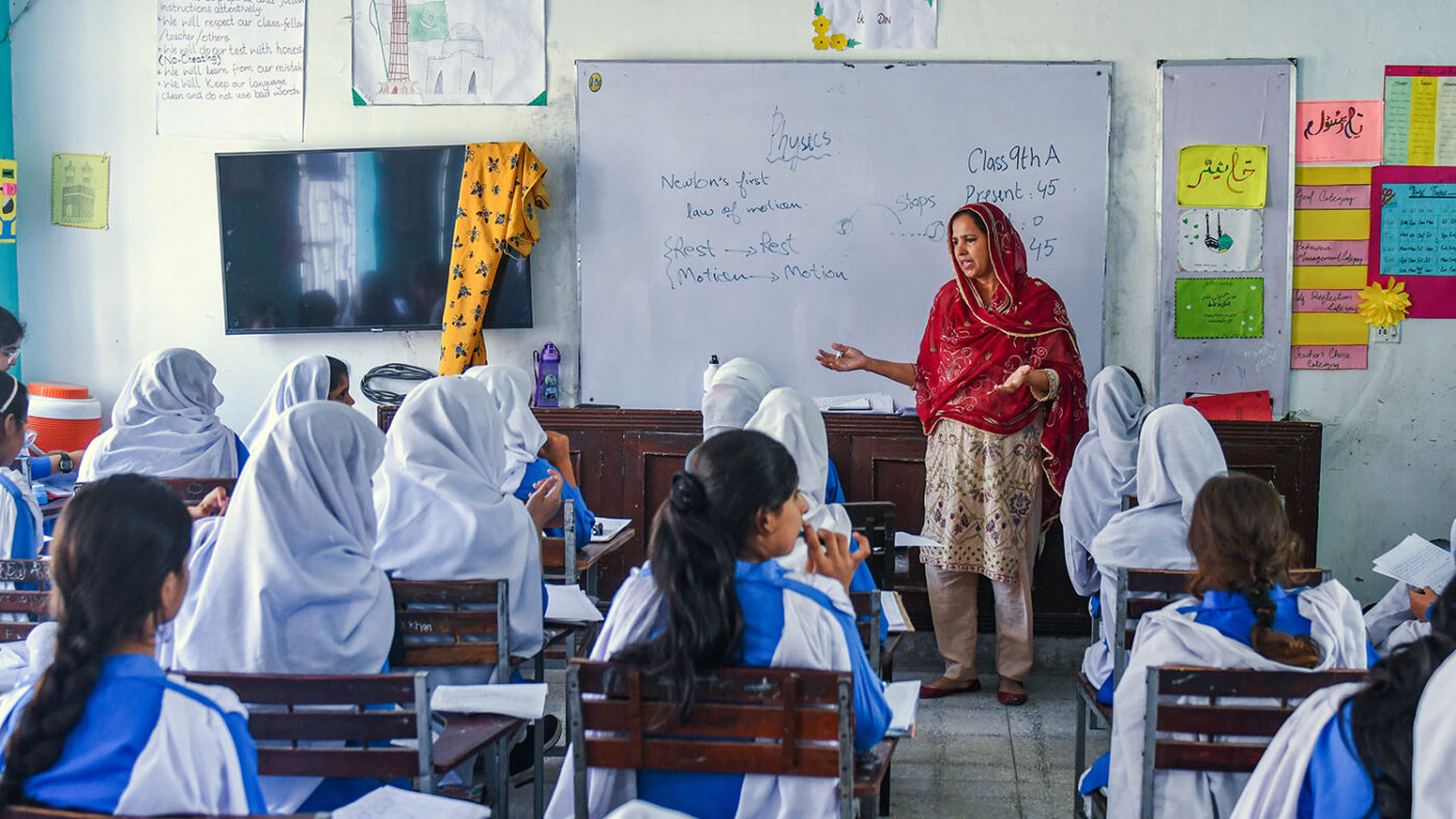 Sightsavers’ school eye health project is training teachers to spot the warning signs of cataracts, as well as other eye problems such as short-sightedness, long-sightedness and astigmatism. Miss Ismat, a teacher from Pakistan trained through the project, discovered more than half the children in her class had sight problems that could have had a long-term impact on their education.