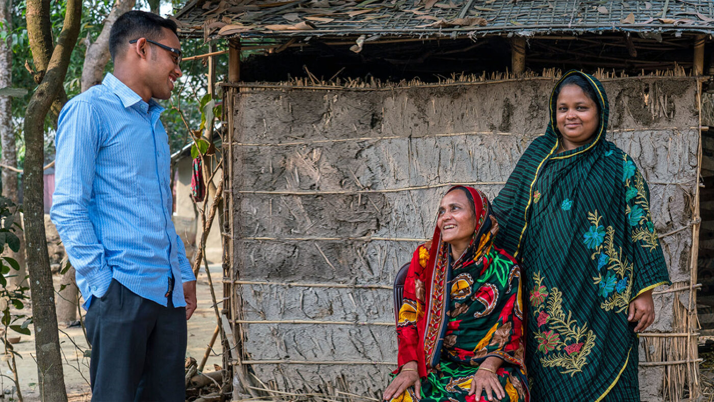 Arif (left), with his mother and sister, took part in Sightsavers' Seeing is Believing project in Bangladesh. © Sightsavers/Reza Shahriar Rahman