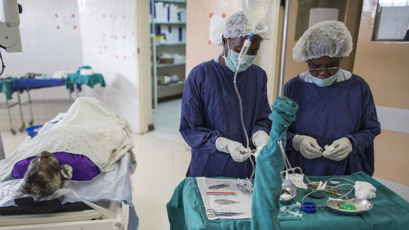 After having their eyes screened for cataracts at an outreach camp or local centre, patients who have been referred arrive at the hospital or eye clinic on the day of their operation and are prepared for surgery by the nurses.